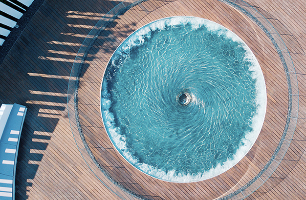 水本無形,它的物理特性讓它能輕易地跟隨容器而呈現(xiàn)不同的面貌。獨特的延展性使得水能呈現(xiàn)無以計數的不同效果。燈光的布置,介質的紋理,顏色和動態(tài)都能給水帶來無窮的變化。